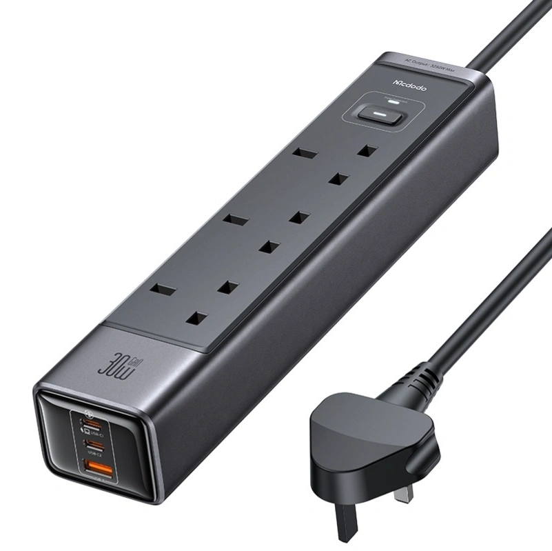 The McDodo 6-in-1 30W GaN Surge Protection Power Strip is a compact and powerful solution for powering and charging multiple devices at home, in the office, or on the go. It combines 3 AC outlets with 2 USB-C ports and 1 USB-A port, all protected by built-in surge protection and advanced safety features. With fast charging support using GaN technology and electrical safeguards against overloads, this power strip makes it easy to keep phones, tablets, laptops, and appliances running safely from one central unit.