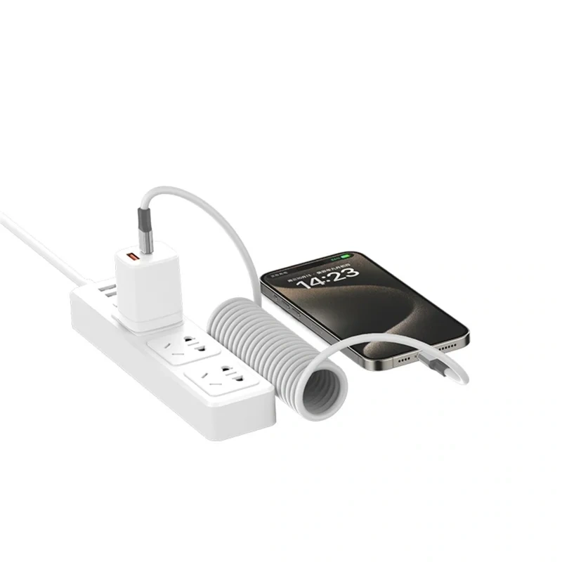 【Spring Cable Design】 Flexible spring design allows for easy extension and retraction, with memory rebound feature.