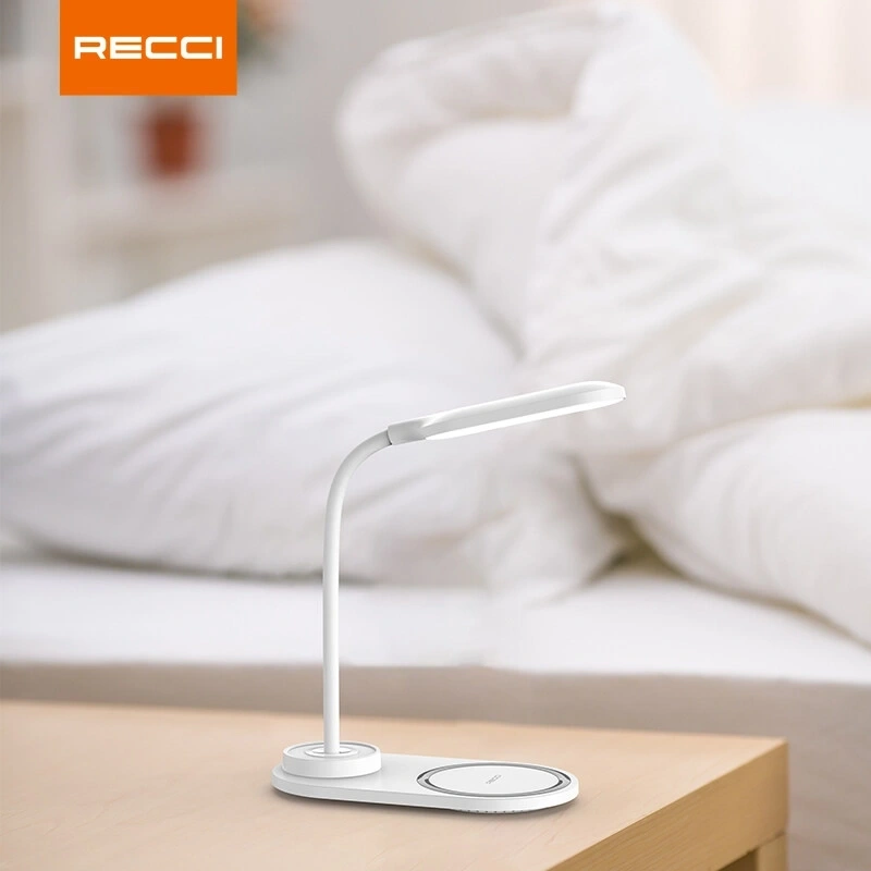 The Recci RLS-L08 is a multifunction desktop LED lamp with built-in wireless charging designed for office desks or bedside tables. It allows you to charge a Qi-enabled smartphone by placing it on the base while using the LED lamp for lighting.