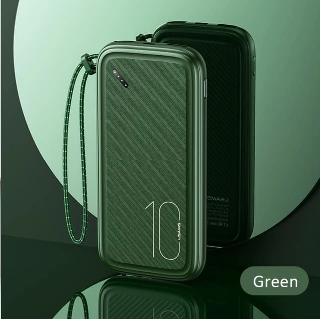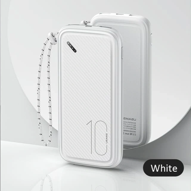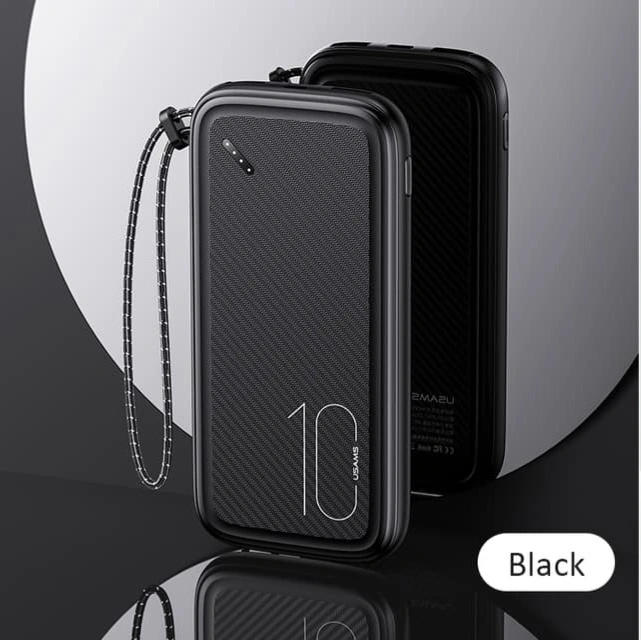 USAMS Powerbank PB56 10,000mAh Usams US-CD150 PB56, high-capacity powerbank up to 10,000mAh and four 2xUSB-A/1xUSB-C/1xMicroUSB ports. The powerbank has been adapted to freely charge up to two devices at the same time. The built-in LED indicator keeps you informed about the energy capacity of your power bank. Powerbank equipped with a multi-protection package for safe charging. Protection against overcharging, overvoltage, adjusts the voltage to the needs of the device, protecting it from overheating. The power bank has been equipped with a practical strong string that you can put on your wrist or attach to a backpack or bag, so you can be sure that you will always have it with you and that it will not be damaged by accidental fall while charging the device. The device has been covered with a waterproof layer that additionally protects the device against dirt and fingerprints
